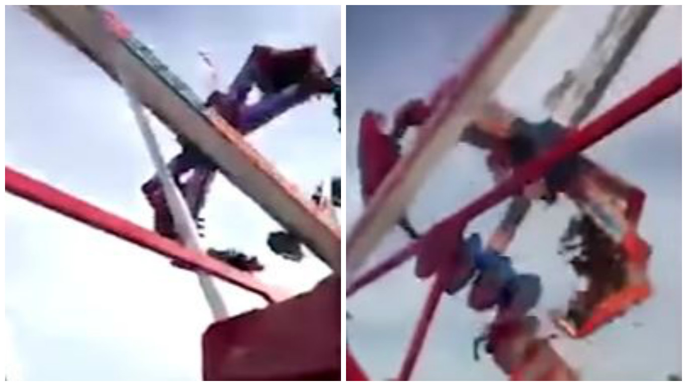 Come documenta il video, ad un certo punto, una parte della giostra si sgancia e alcune persone cadono nel vuoto.