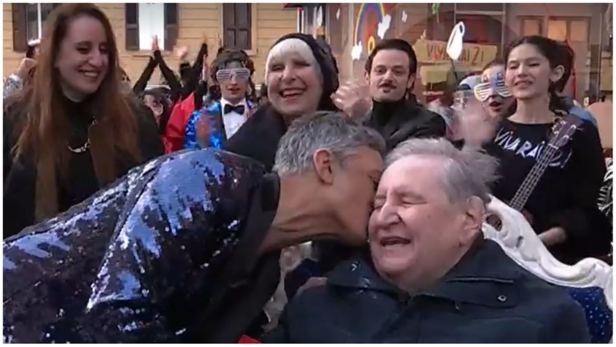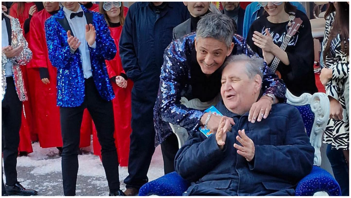 Fiorello ha così descritto la scena al festeggiato che è ipovedente per colpa di un glaucoma: “C’è Giorgia Meloni dentro la torta. Ci sono 40 ballerini che stanno ballando per te. Il presidente del Consiglio è venuto a ballare per te oggi”. “Mi sembra un po’ troppo questo”, ha ironizzato Mollica. “Questo è l’evento dell’anno”, ha esultato lo showman.