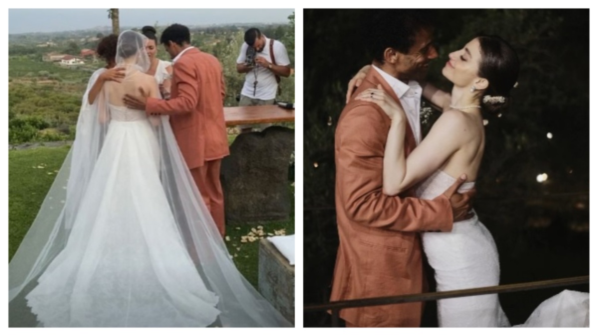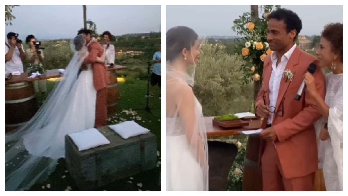 Virginia Tomarchio e Amilcar Moret Gonzalez si sono uniti in matrimonio in Sicilia. I due danzatori hanno pronunciato il fatidico sì dopo quasi dieci anni d’amore a Trecastagni, in provincia di Catania, città natale della sposa. La cerimonia si è svolta all’aperto, in un bosco. Virginia Tomarchio ha indossato un abito bianco impreziosito da una collana di perle, Amilcar Moret Gonzalez un vestito color mattone con una camicia bianca. Durante il ricevimento, la sposa si è cambiata d’abito.