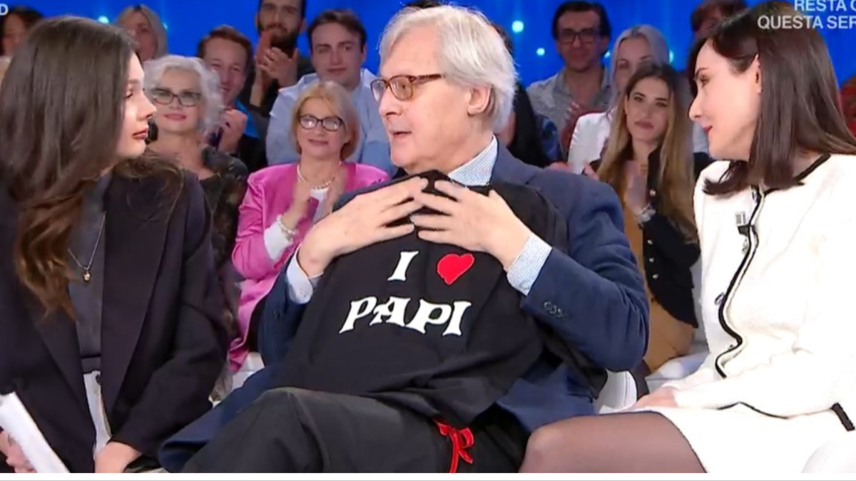 Evelina vive a Biella, Alba a Tirana. Le due ragazze hanno fatto il loro ingresso in studio e lo hanno dipinto come un padre affettuoso. “E’ un papà molto dolce e presente, non fisicamente, ma è sempre presente – ha precisato Alba – Ci segue in ogni passo che facciamo. Sono veramente orgogliosa di essere sua figlia. E grazie di tutto”. “Fa tanta scena, però quando c’è bisogno c’è”, le ha fatto eco Evelina. “Io sono un padre da remoto”, ha ironizzato Sgarbi.