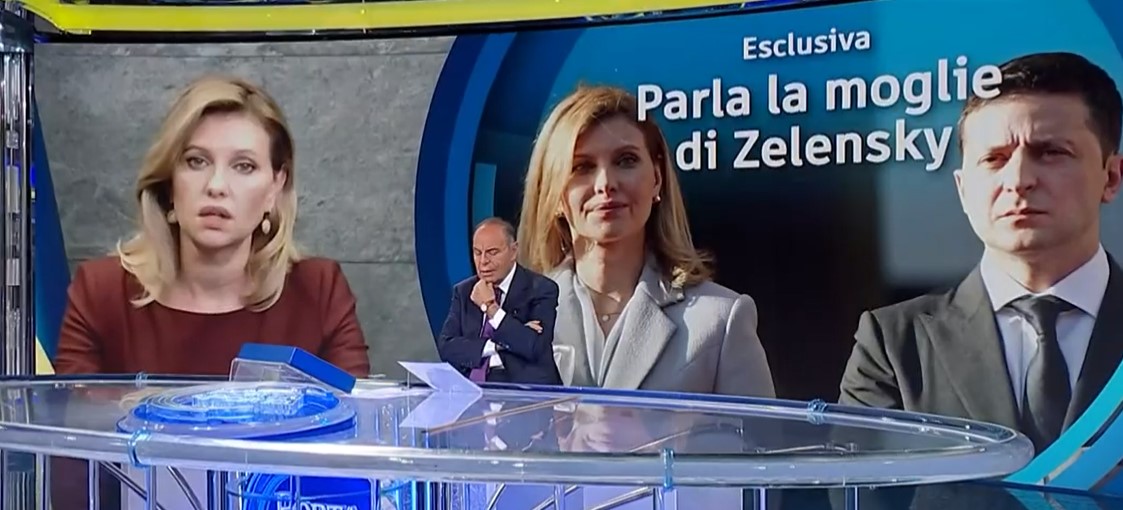 Ieri sera, a “Porta a Porta”, Bruno Vespa ha intervistato Olena Zelenska, moglie del presidente ucraino Volodymyr Zelensky. Da quando la Russia ha invaso il suo Paese, la First Lady ha parlato solo due volte con una tv straniera. La prima con la Cnn, la seconda con la Rai.